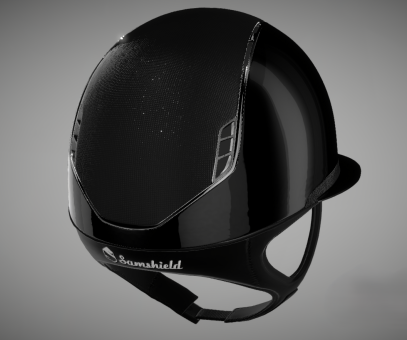 Samshield Reithelm Miss Shadow Glossy Black 2.0, Dressurausschnitt, Top Shimmer Black, Frontal Band Shimmer Black, Trim + Blazon Chrome Black