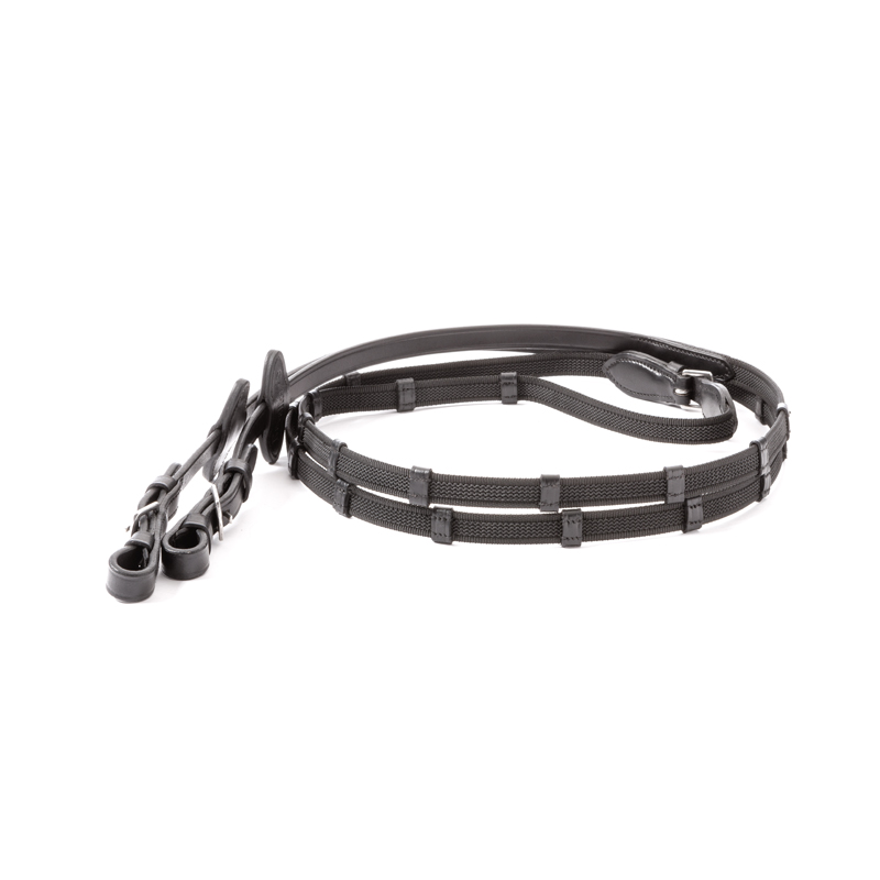 Kavalkade Gummierte Zügel "doppelte Stege", 16 mm, schwarz